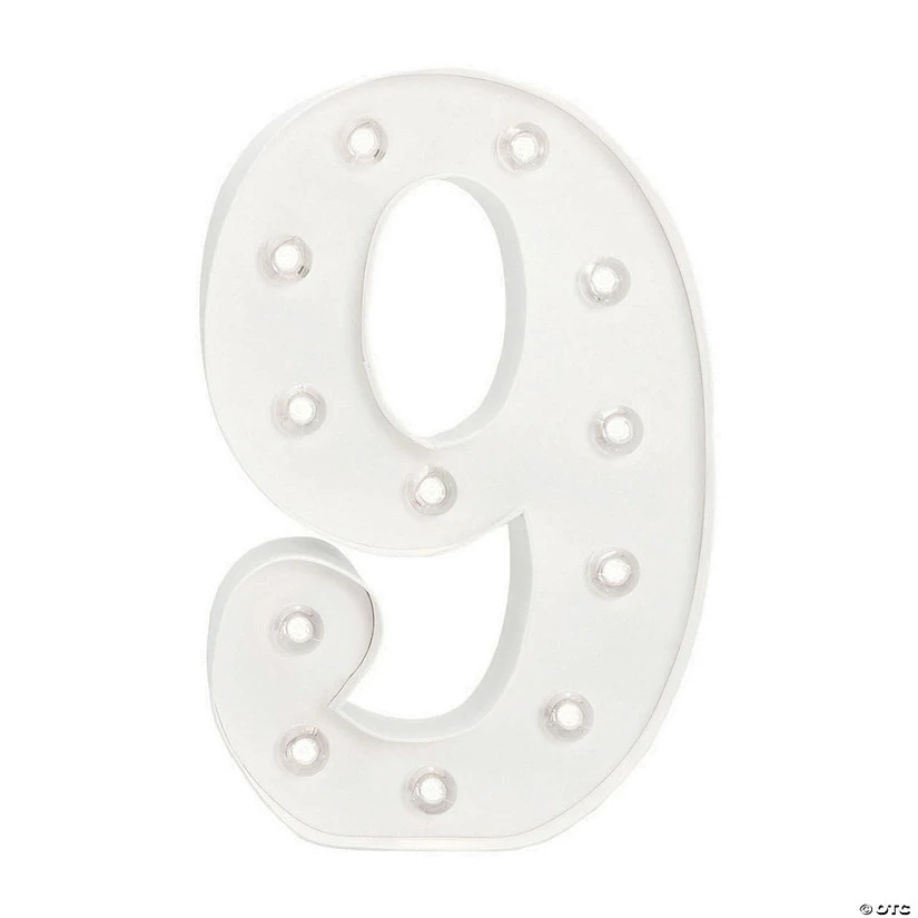 With your creative touch, make this number nine look oh-so-fine! This marquee number is a must-have to DIY craft supplies for adults as it’s easy to decorate with paint, washi tape, scrapbook paper, glitter and embellishments of all sorts. The options are practically endless! In fact, you can pair with other numbers and add to wedding décor or anniversary party décor to display your big day date. Includes the DIY cardboard number, plastic light stand, clear bulbs, instructions and tracing template. 10″ Requires 2 “AAA” batteries, not included. Simple assembly required. © American Crafts, LC. All Rights Reserved.