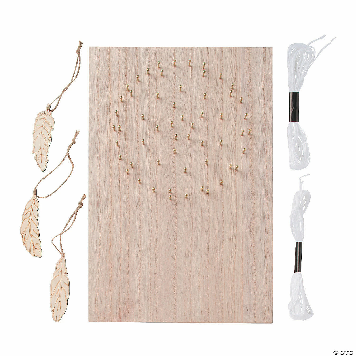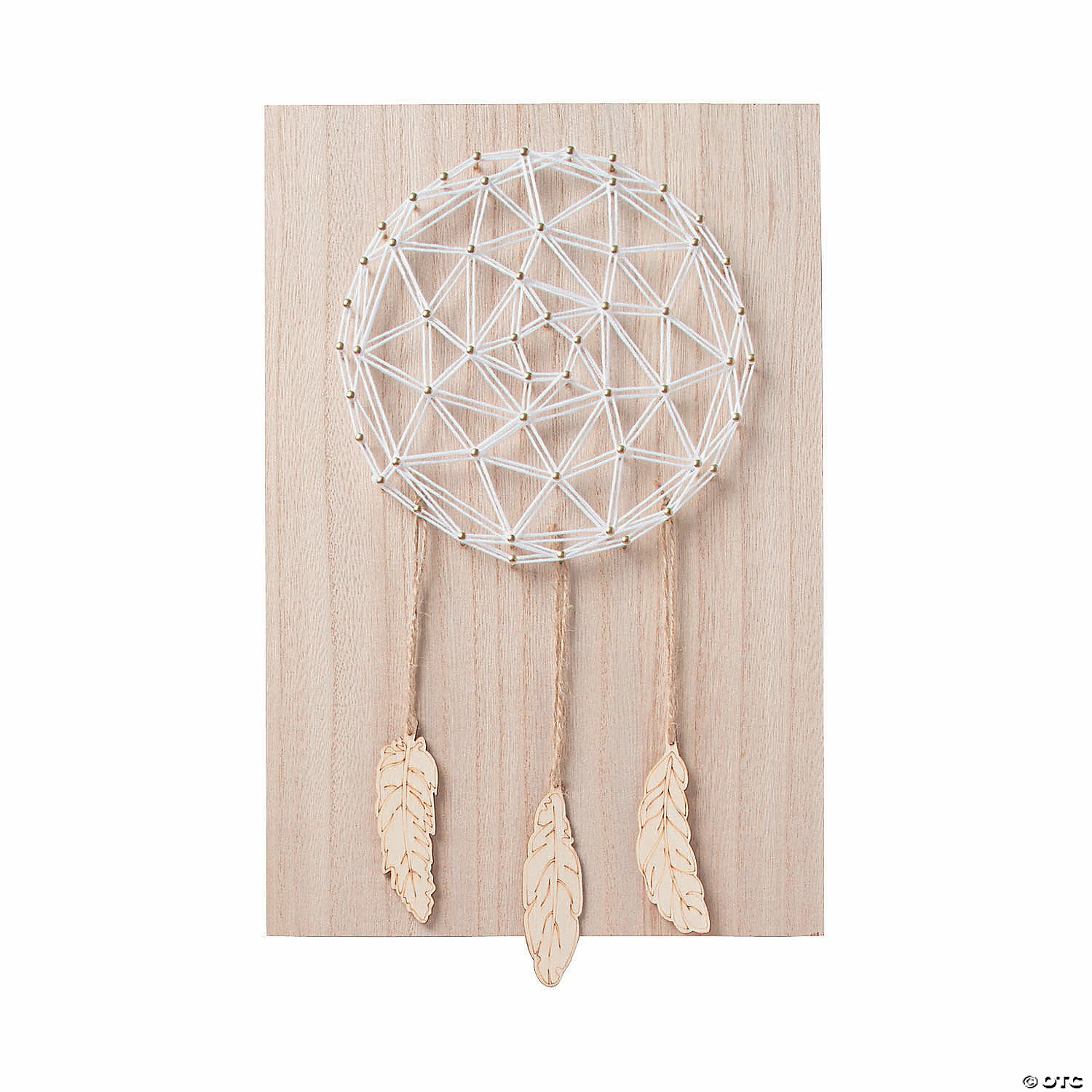 Make yourself a lovely home dรฉcor piece with this Dream Catcher String Art Craft Kit. Wrap and wind the string around the pegs and attach the feather charms for a beautiful art piece. Hang it up at your home to catch your dreams and look amazing at the same time. Includes string. Wood. 8″ x 12″ Includes hardware for hanging.Dream Catcher String Art Craft Template