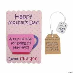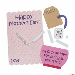 Let her know you think she’s tea-rrific! A great addition to Mother’s Day crafts for kids, this card comes in a pretty pink design, featuring a cup of tea and several sentimental messages. Little ones will love bringing this to life using their own creativity in class, then coming home to display as a gift for the most important woman in their lives! Includes self-adhesive foam pieces and satin cording. Cardstock. 5″ x 7 1/2″ Makes 12. All craft kit pieces are pre-packaged for individual use. Kits include instructions. © OTC
