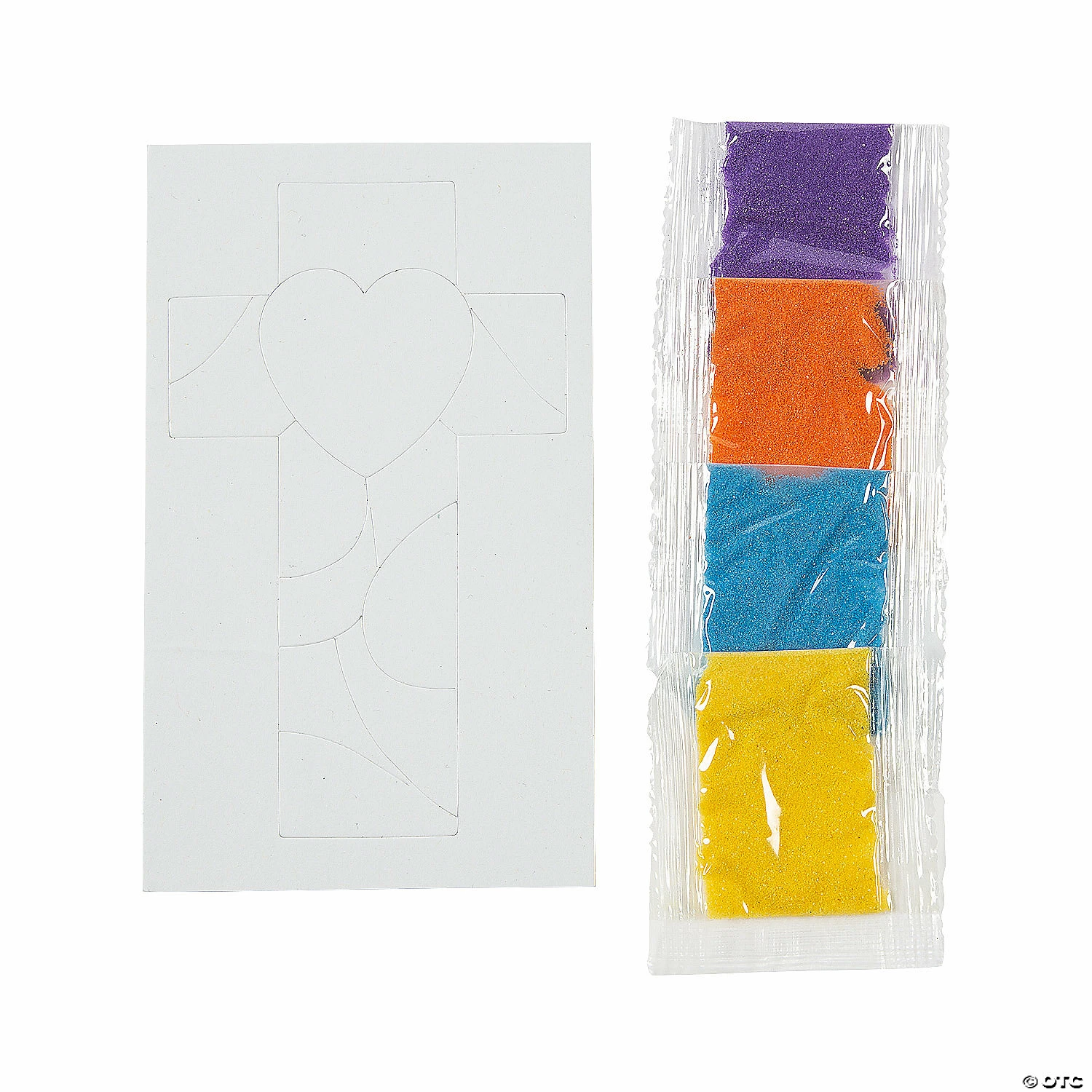 Create colorful sand art with this inspirational cross picture craft kit! Inspire artistic designs with this craft, which is an ideal project for Vacation Bible School or Sunday School. Simply peel off the protective covering to reveal an adhesive surface, then sprinkle on the sand. Cardboard. 3 1/4″ x 5 1/2″ Makes 12. Includes bags of assorted color sand. All craft kit pieces are pre-packaged for individual use. Kits include instructions. Ā© OTC